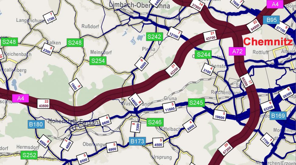 - Analyse der bestehenden Verkehrssituation im B173-Korridor zwischen Chemnitz und Zwickau (u.a. Verkehrserhebungen, Unfallauswertungen)