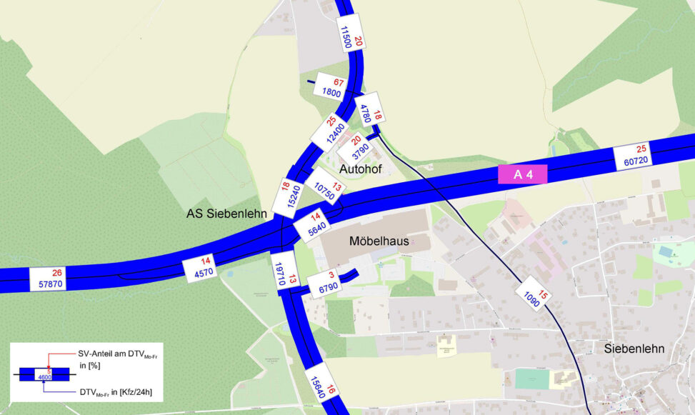 - Prognose der Verkehrsbelastungen im angrenzenden Straßennetz auf Grundlage des Verkehrsmodells der Landesverkehrsprognose für den Freistaat Sachsen