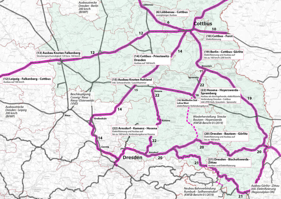 - Bewertung der im Rahmen des Braunkohle-Strukturwandels vorgelegten Infrastrukturprojekte über einen angebotsorientierten Ansatz – d. h. hinsichtlich ihrer verkehrlichen Wirkung, unabhängig von der Kapazitätsauslastung und der derzeitigen und prognostizierten Nachfrage