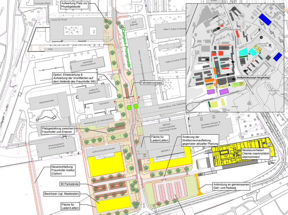 - Erarbeitung eines Mobilitätskonzeptes für den Campus Reichenhainer Straße auf Basis des städtebaulichen Masterplanes von 2018