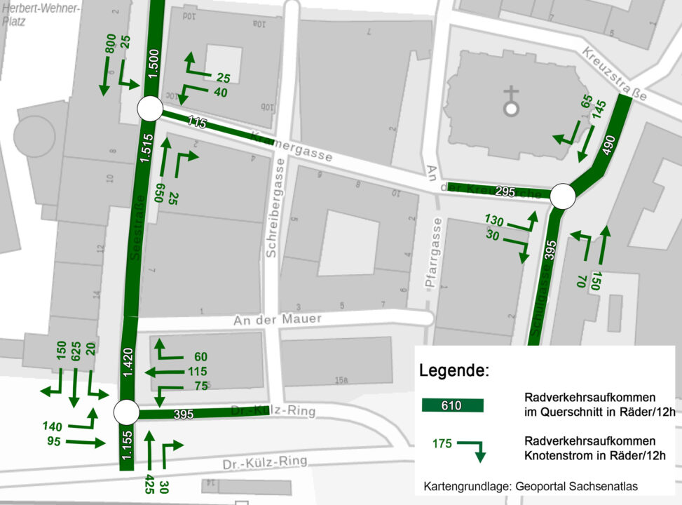 - Durchführung, Auswertung und Bewertung einer Vorher- und einer Nachher-Erhebung im Kfz-, Fuß- und Radverkehr zur Erfassung der verkehrlichen Wirkungen des Verkehrsversuches