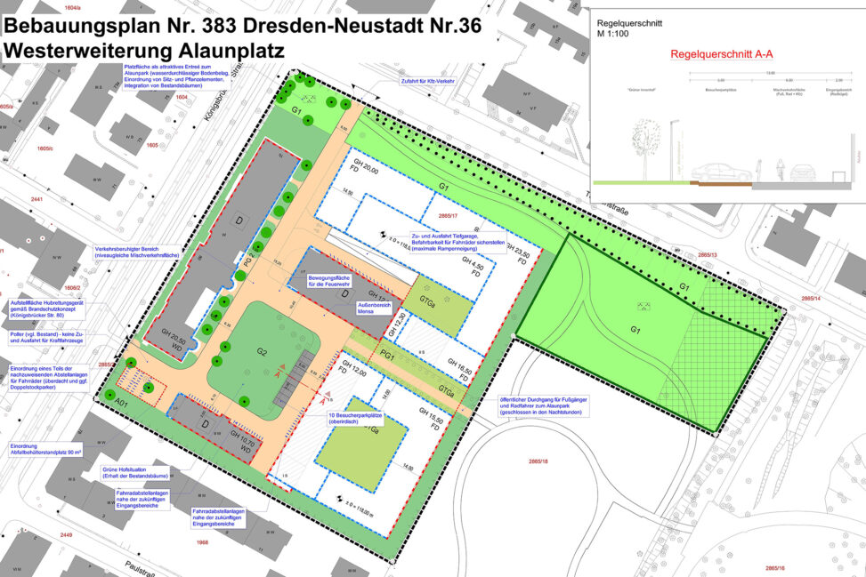 Bebauungsplan Nr. 383 Dresden Neustadt Nr. 36, Westerweiterung Alaunplatz, Verkehrs- und Erschließungsplanung