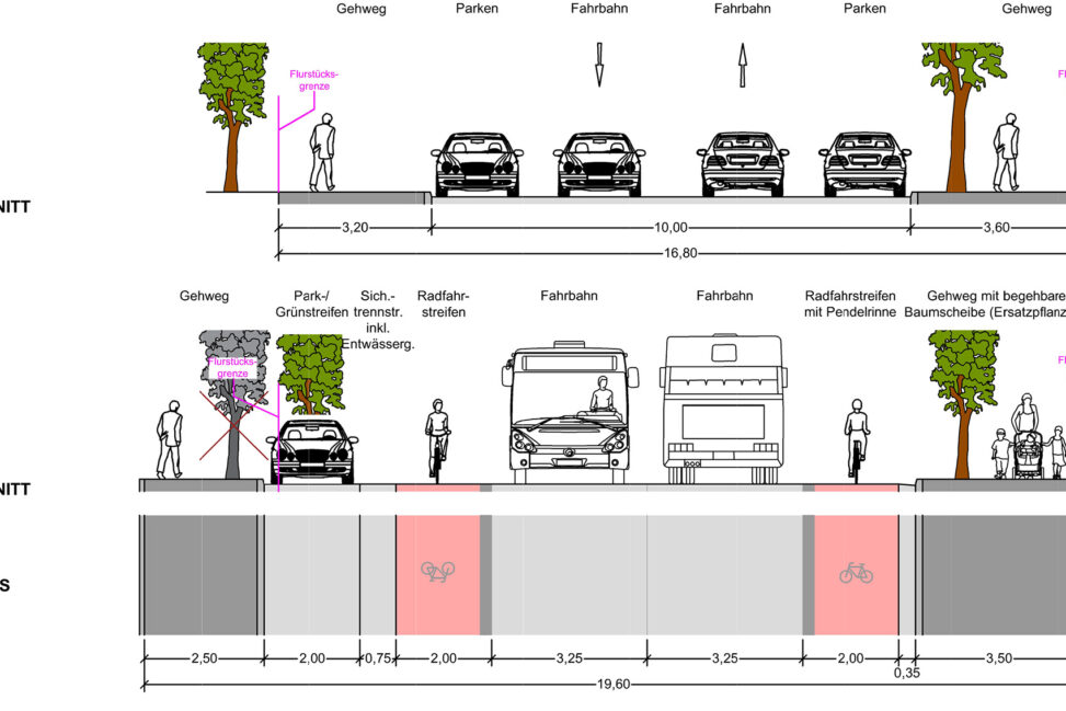 Grundlagenermittlung, Klärung verkehrlicher und nicht verkehrlicher Randbedingungen für die Straßenraumgestaltung,…